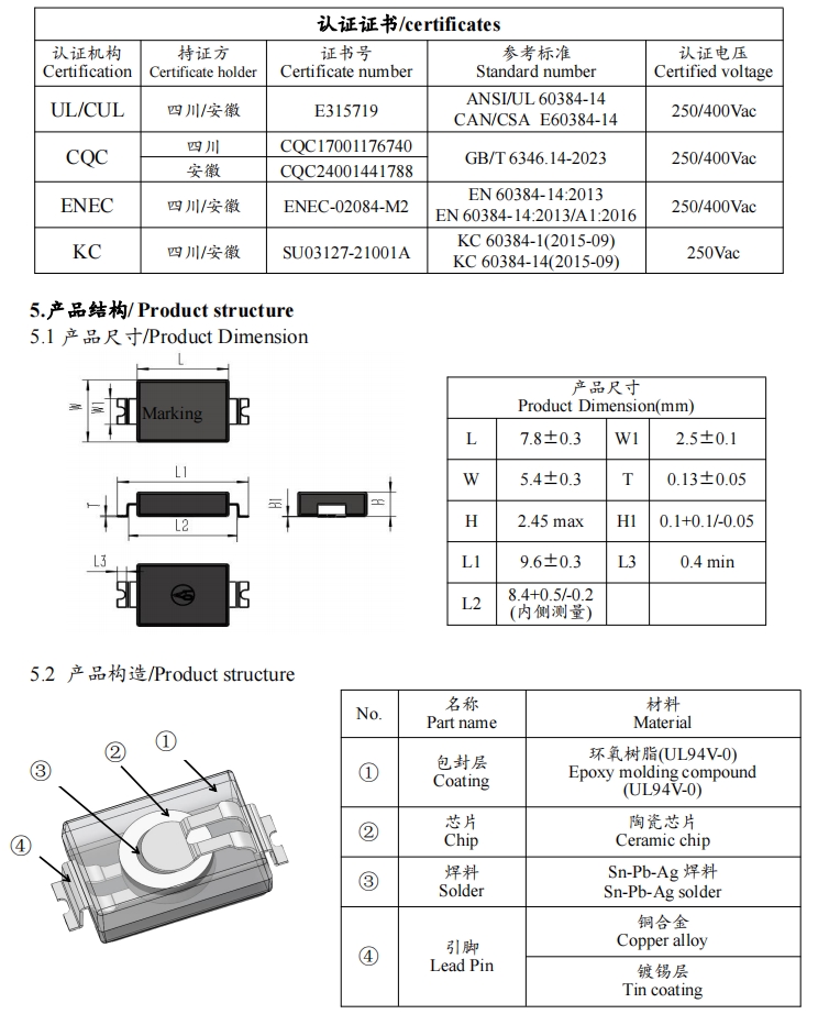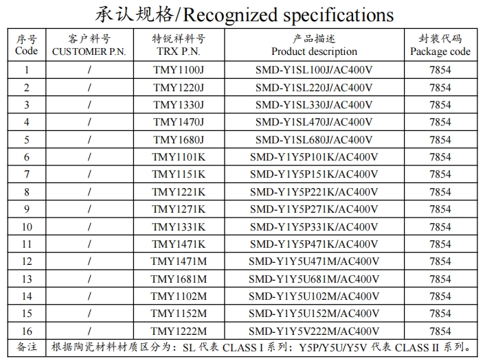 《特銳祥電子Y1電容系列承認(rèn)書》