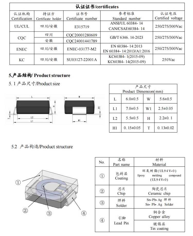 △=(CX-C0)/C0 Y5P△: ±10% Y5U△: ±15% Y5V△: ±15%